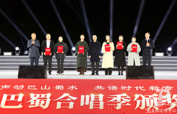 经过专业评委严格评判,四川省宜宾市文化馆和美合唱团、重庆市忠县忠爱女声合唱团、四川省攀枝花市文化馆合唱团、重庆市渝中区文化馆鸿恩合唱团获得一等奖,重庆市石柱县文化馆和雅之声教师合唱团、四川省广安市文化馆岳池三尺合唱团、四川省泸州市文化馆青年女子合唱团、重庆市垫江县教师合唱团、重庆市娇阿依苗音合唱团、四川省德阳市文化馆百合男声合唱团获得二等奖,四川省绵阳市安州区源爱教师合唱团、四川省雅安市老年大学合唱团、重庆万州区教师合唱团、重庆市忠县忠州第二小学校彩贝童声合唱团等11支团队获得三等奖。当晚,颁奖晚会在忠义广场举行,现场领导分别为获奖团队颁奖,举行了巴蜀合唱季会旗交接仪式。舞蹈《大美双城记》《忠魂·不朽》,表演唱《心有所“蜀”》等10多个精彩节目轮番上演,赢得现场观众的阵阵掌声和喝彩声。